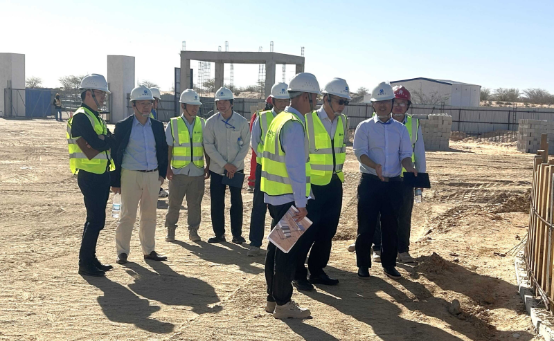 On the afternoon of December 17, a delegation led by Xiao Wensheng, Economic and Commercial Counsellor at the Chinese Embassy in Mauritania, visited the 60 MW dual-fuel power plant project undertaken by China National Electric Engineering Co., Ltd. (CNEEC) to inspect the construction progress.