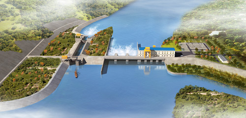 該項目開發以發電為主,兼顧航運。電站為河床式,總裝機容量為40MW,安裝4臺10MW燈泡式貫流機組,額定水頭9.1m。